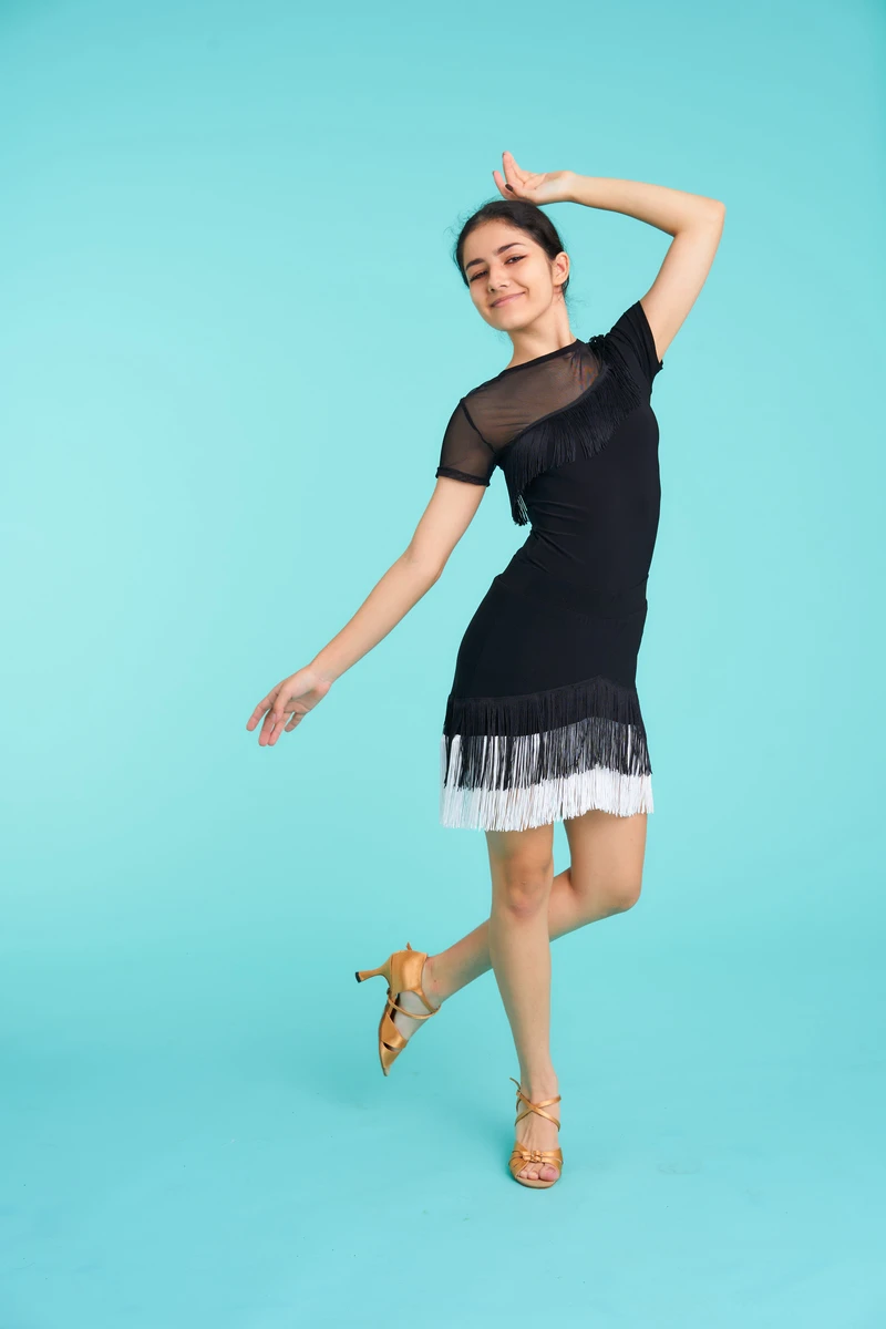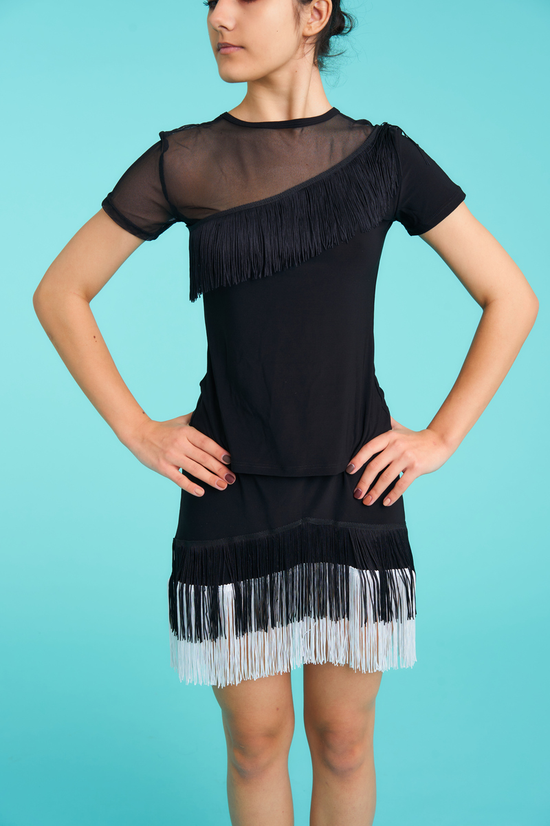 Блуза "Мімі", Чорний, Масло + сітка + бахрома