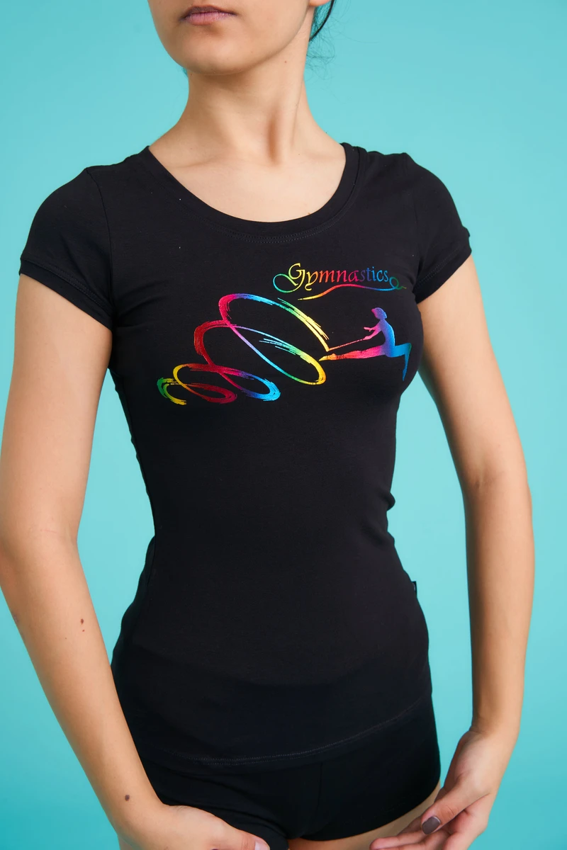 Футболка к/р "Євгенія", Чорний (ф. веселка), 90% бавовна + 10% лайкра