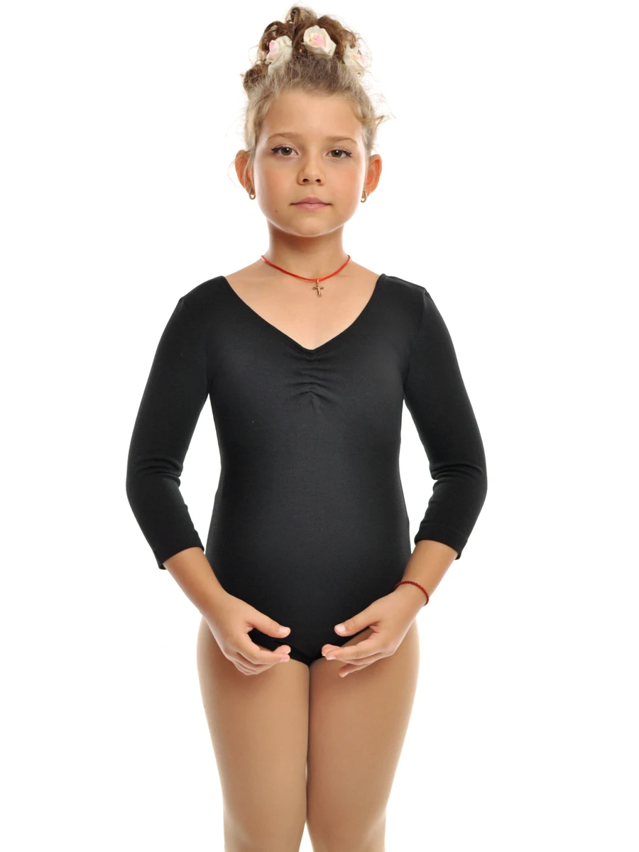 Купальник 3/4 рукав з драпіруванням, Чорний, 80% бавовна + 15% віскоза + 5% лайкра